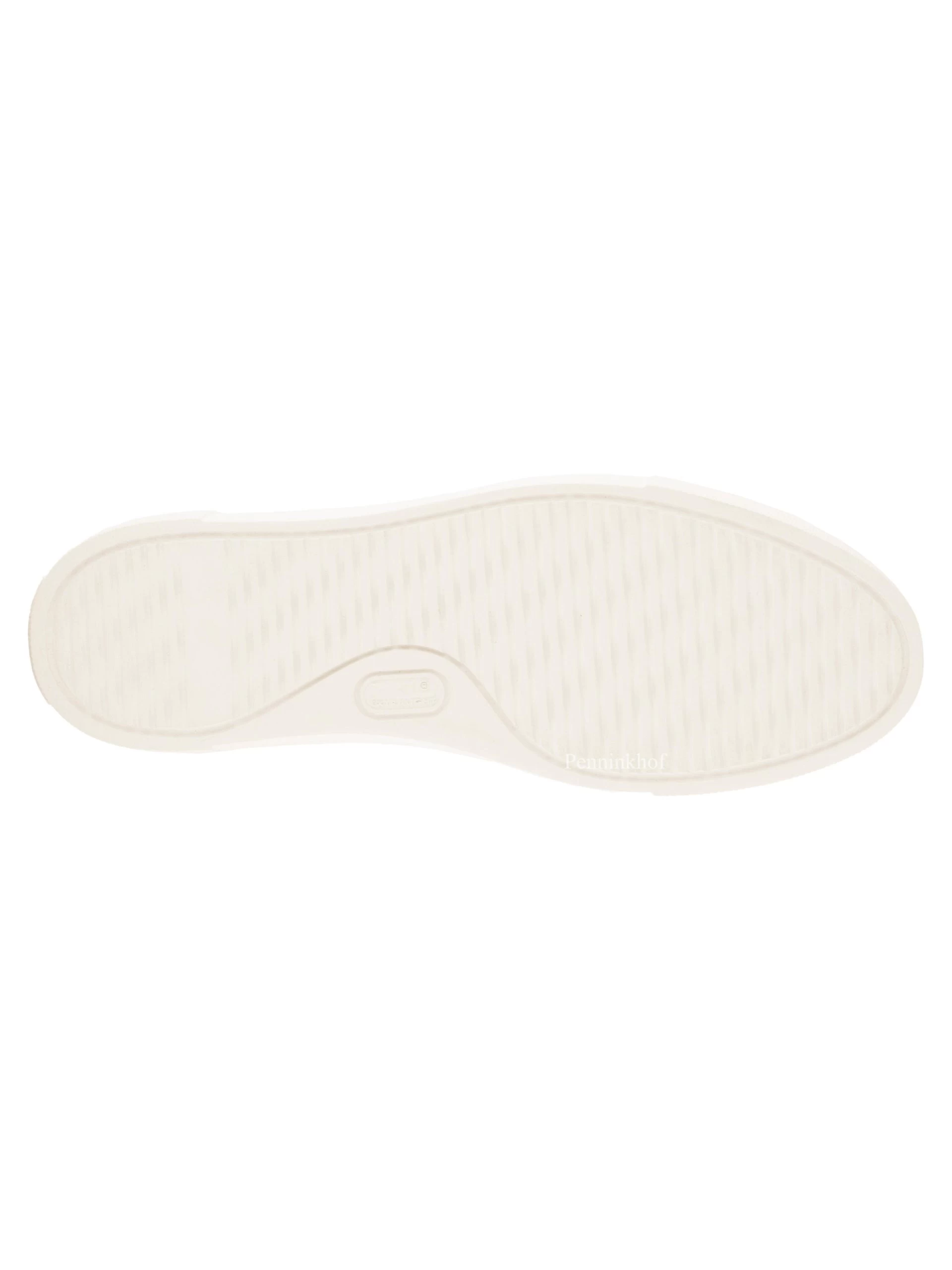 Een sneaker van AGL in een jeansprint. Langs de stiknaden zijn decoratieve kleine studs in een zilver kleur. De platte veters zijn fijn geribbeld. De binnenkant is met leder gevoerd. De plateauzool is in de kleur wit.