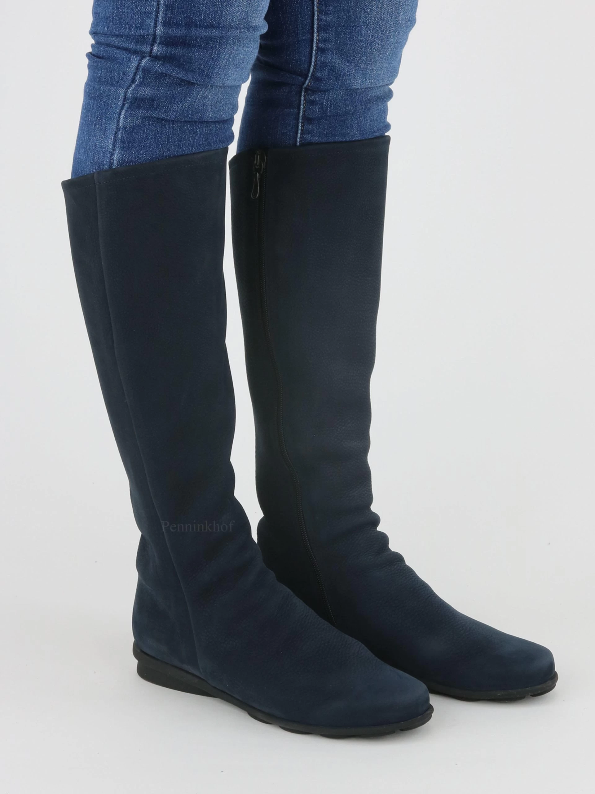 Een laars van Arche in de kleur marineblauw. Aan de binnenzijde van de schacht is over de gehele lengte een zwarte rits. De binnenkant van de schacht is ongevoerd.